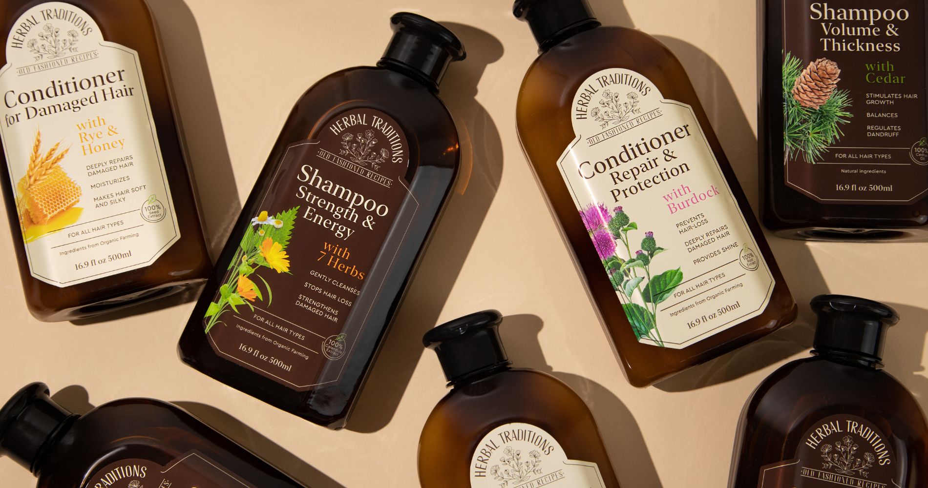 HERBAL TRADITIONS plaukų kondicionierius su 7 žolelėmis, stiprinantis ir skatinantis plaukų augimą, 500 ml